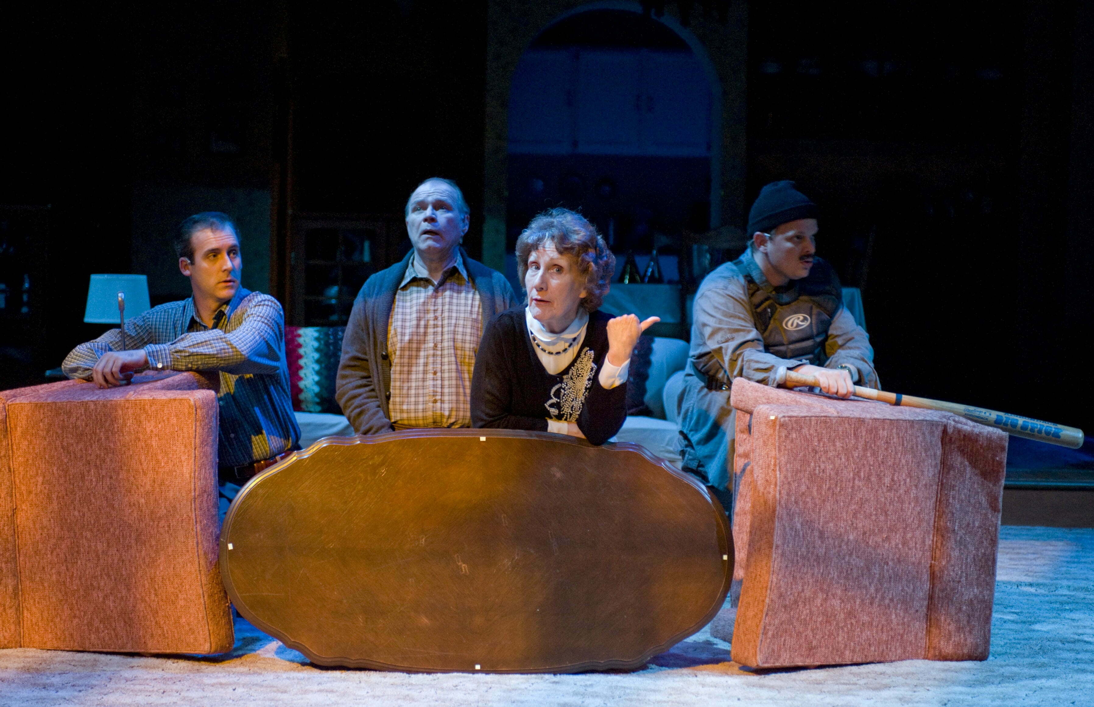Sean Grennan’s Making God Laugh is a touchingly heartwarming family comedy that is so well cast and so well performed that we do actually believe we are witnessing an actual family saga. The impressive middle class family home set (by Angie Weber-Miller) sets the tone for the holiday tradition that finds the ’empty nester’ parents – Jimmy (Craig Spidle) and Ruthie (Peggy Roeder) as they welcome their grown children home for various holidays. Thanksgiving 1980 finds Richard (Joe Foust), the son and former high school football star with the losing entrepreneur bent ( he bought a Pacer car and invests losers like  Yugo cars, Enron but spurns winners like Google). Maddie (Erin Noel Grennan) is the actress daughter who is constantly nagged by her mother Ruthie for being an actor and not being married. Thomas (Kevin Mckillip) is the the golden son because he is a Catholic priest.
