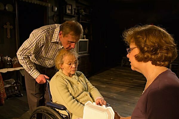 Redtwist Theatre’s production of Tracy Letts’ Man From Nebraska starts slowly as it has several short scenes depicting the ‘normal’ life of Ken Carpenter (Chuck Spencer) and Nancy Carpenter (Jan Ellen Graves). We see them visiting Ken’s mother at a nursing home, eating at a restaurant, driving in the family car, sitting in front of the TV, and praying at Church. Theses short scenes are a tad tedious but they serve to establish the dull life of Ken and Nancy Carpenter. We see the Carpenter’s, from Lincoln, Nebraska, are Methodists Christians living ‘Christian’ oriented family values. We also see that the middle aged Carpenter’s have lost their romantic spark over the years.