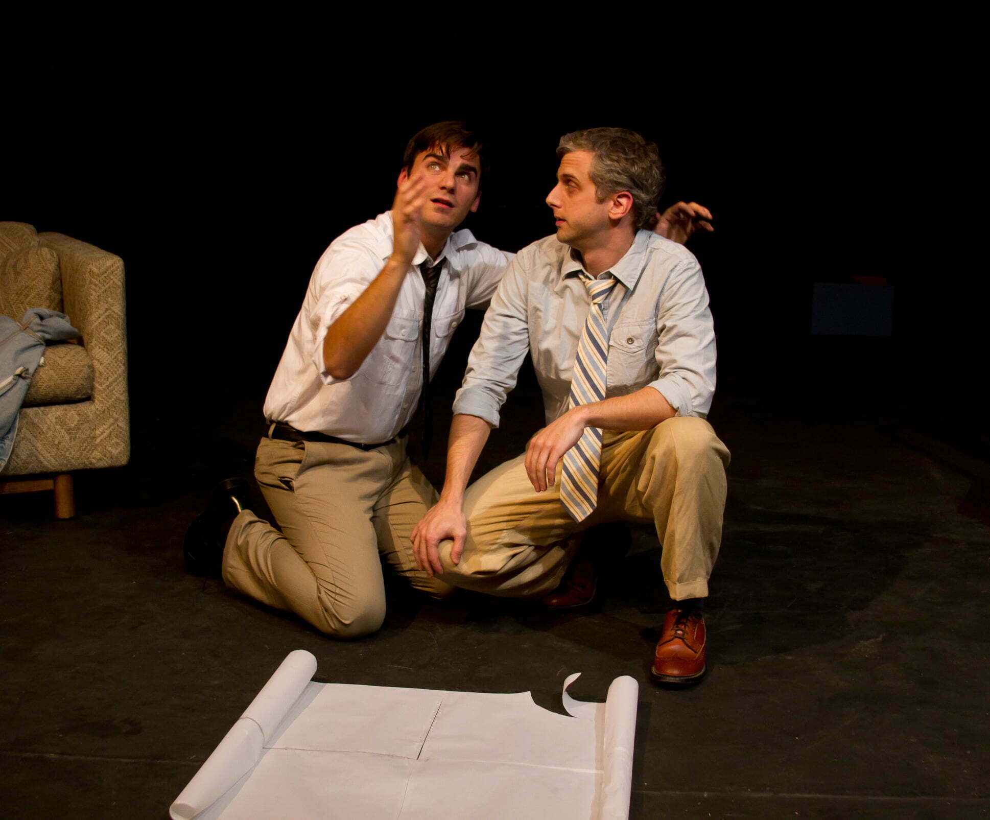 The almost bare stage has several flats, a couch, a piano and several actors and the director getting ready for another rehearsal of their play. Brenda (Brenda Barrie) questions her director (Josh Hambrock) about the re-writes as other cast members wonder in to the rehearsal bothered by parking places and the need for hot coffee. But once the rehearsal begins, the cast instantly becomes professional letting their talents and memories present the work.