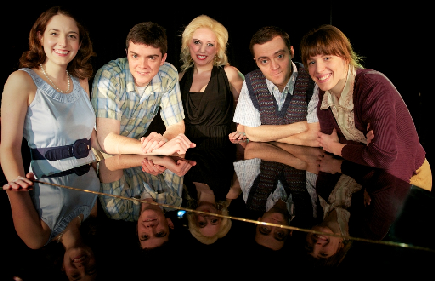 Merrily We Roll Along follows the story of three friends, not as a memory play, but as a moving backward operetta. Boasting one of Sondheim’s innovative scores, Merrily We Roll Along traces their lives from the end to the start of their careers. It is an updated (to the ‘50’s through ‘70’s) version of the 1934 play by George S. Kaufman and Moss Hart. The story revolves around Franklin Shepard (Jerrod Zimmerman in an outstanding performance) who, having once been a talented composer of Broadway musicals, has now abandoned his friends and his songwriting career to become a producer of Hollywood films. Like the play, the musical begins at the height of his Hollywood fame and goes back in time, showing snapshots of the most important moments in Frank’s life that shaped the man that he is today.
