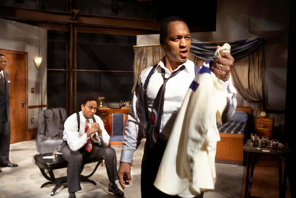 Mr. Rickey (Larry Neumann, Jr.), the white general manager of the Dodgers, wants to show a united front to his integration initiative of baseball with champion boxer Joe Louis (Anthony Fleming III), legendary dancer Bill “Bojangles” Robinson (Ernest Perry, Jr.), and singer/actor and political activist Paul Robeson (James Vincent Meredith). The three meet in a NYC hotel room with a waiting press conference in the works in the lobby. Rickey’s strategy snags when Paul Robeson voices concerns about the ‘big picture’ of putting a black man on a Major League baseball team.
