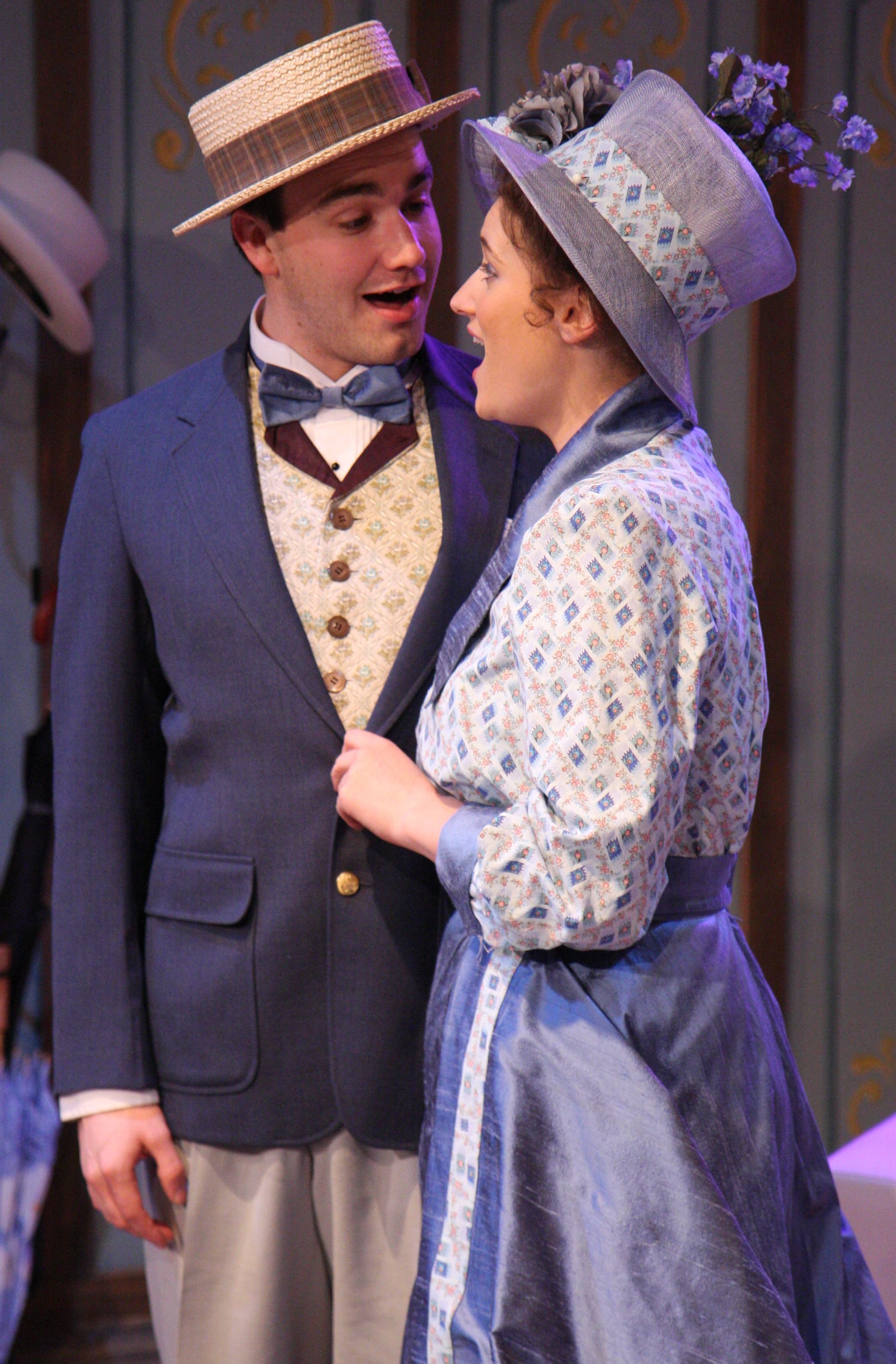 McCabe has cast an enormously talented troupe of triple-threat non-Equity actors  who create rich harmonies from Kern’s operetta-style score. The three boys and three girls in the chorus:  Jasmine McNeely, Danielle DeFssio, Alex Newkirk, Annie Passanisi, Brett Taylor and Jayme Wiociechowski contributed  expert harmonies, nice duets and fine solos while also dancing the smooth soft-shoe choreography by Amy Uhl to precision.  They constituted a strong ensemble.