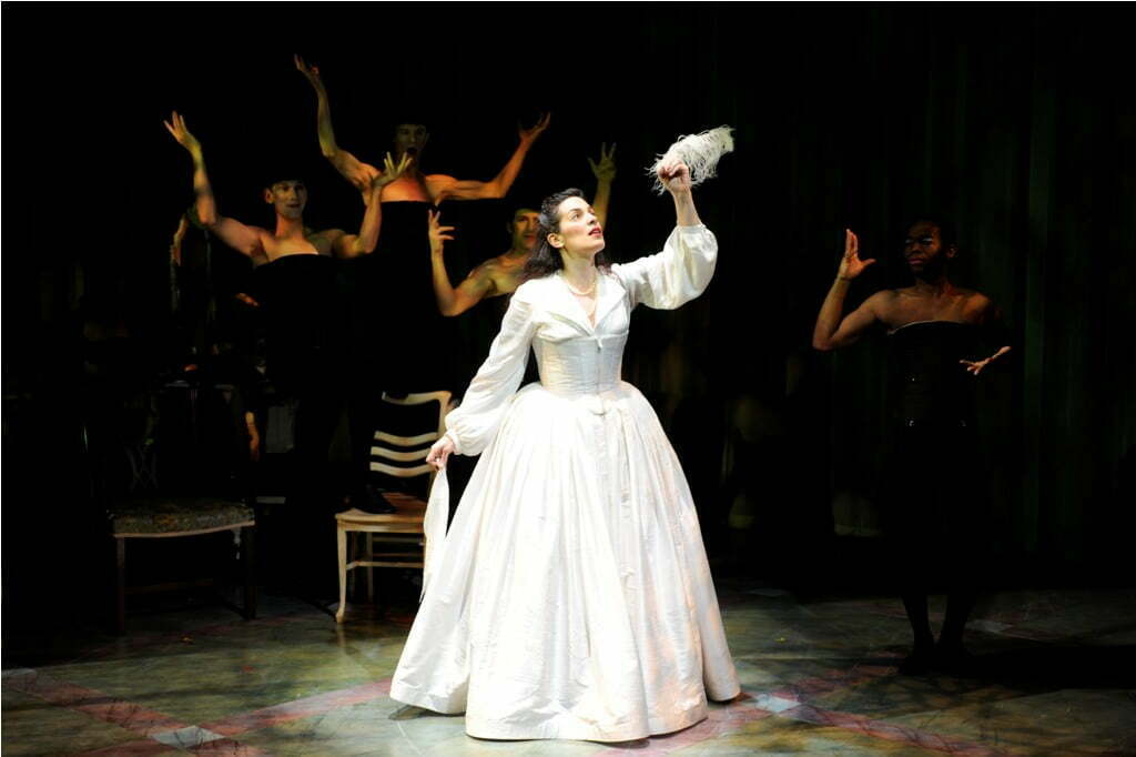 Sarah Ruhl’s adaptation thereof has on the stage the feel of a Shakespearean romance: time and distance are travelled freely, in little space, and without much regard. The whimsy is so thick one could use it as a spread for bread. And it is crafted so cleverly as to delight without compunction. Orlando, played by Amy J. Carle, we first see in Elizabethan England as a young boy. The queen takes a fancy to him, and brings him to her court, where he eventually meets Sasha, a Russian princess, and they fall in love. She disappears back to Russia, and Orlando is left alone. He eventually asks King James if he can go to Constantinople, during which time, after a long slumber, he wakes up a girl. The now-female Orlando wishes to return to England, and has trouble playing his – or rather her new role as passive, chaste objet du désir. The Victorian era gives her a new sense of happiness, but also a driving need to find a husband, which she does. At which point, aged 36, she arrives in the 20th century.