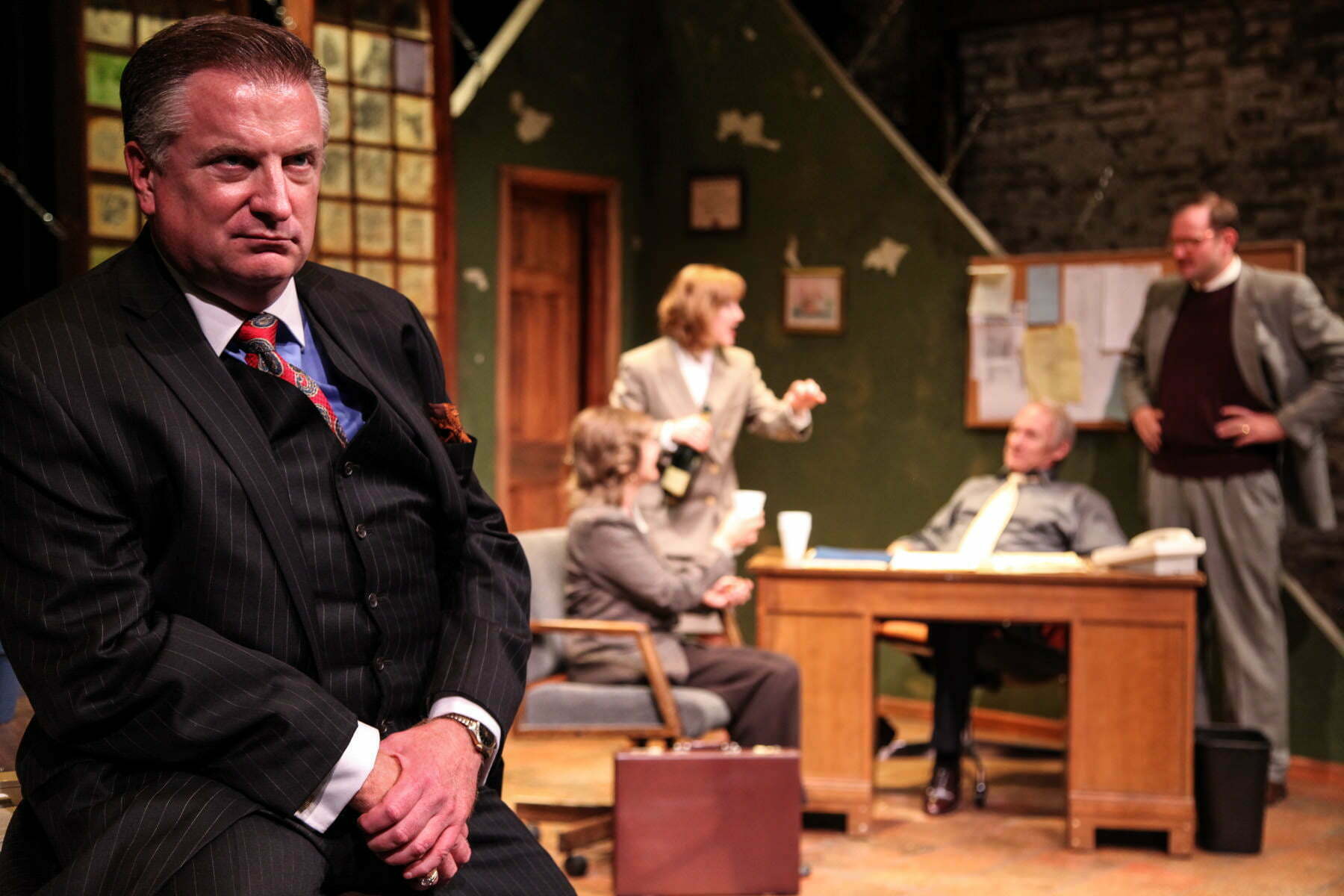 You may remember the 1991 film of Other People’s Money staring Danny DeVito? Shattered Globe Theater, under the smart direction by Dennis Zacek, have a lively and often funny production of Jerry Sterner’s Other People’s Money. Featuring Ben Werling as Larry “The Liquidator” Garfinkle, Other People’s Money is a sly and cynical look at the vultures of Wall Street at work doing hostile takeovers of dying companies. Andrew Jorgenson (Doug McDade) is the loyal old-time CEO of a New England Wire and Cable Company with 1200 employees in a dated industry. The company is solid, diversified, debt -free company. They are just the type of company that ruthless businessman like Garfinkle target as they buy enough stock to take over the company with the intent to liquidate it for profit.