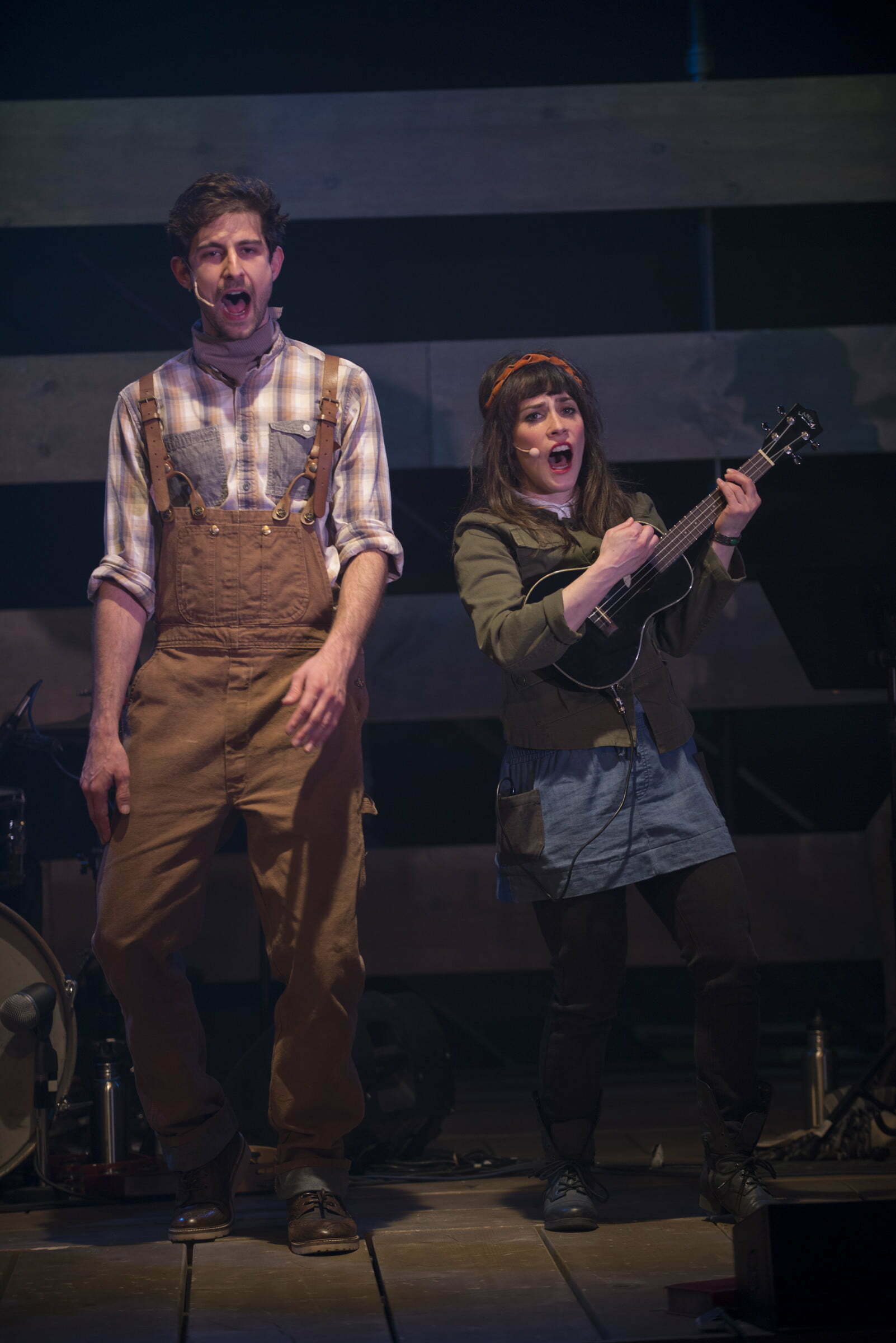 There are elements of bluegrass and folk music here, but in general, they’re too lacking in texture or soulful depths to stick with you. And that’s a shame, because the band-musical form that Ploughed Under borrows—blurring the line between revue, book musical and concert event— has interesting potential. The whole thing reminded me, for instance, of Futurity, a stage production written by the Brooklyn indie band The Lisps, performed recently at Joe’s Pub in New York, the Walker Art Center in Minneapolis and the American Repertory Theater in Cambridge, Mass. Watching the trailer for it (below), one perhaps gets a better sense of what Ploughed Under could have been had it not decided to play it so insufferably safe.
