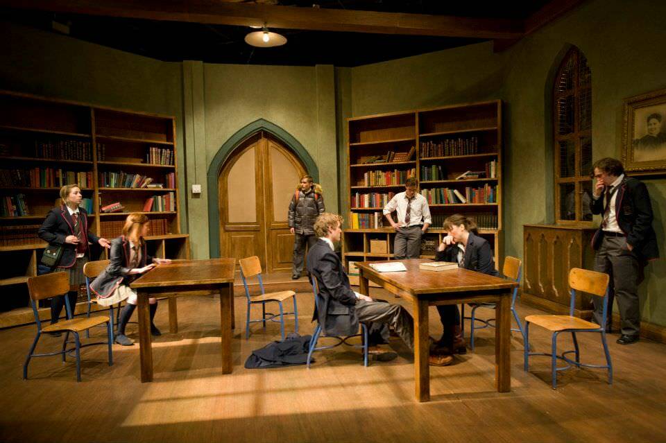 Set in a British prep school in the library (outstanding set design by Joe Schermoly), we meet the eight 17 year old’s as they get set to write their exams that will determine their college. There is the nerd boy – Chadwick (Ryan Heindl) a math wiz with a gloomy view of the future; Nicholas (Brandon Ruiter) is the athlete; William (Joey deBettencourt) is the lonely troubled boy who appears as a ‘nice guy.’ Bennett (JJ Phillips) is the group’s mean bully to cover his in security and sexual identify. Cissy (Jess Berry) is the anorexic smart girl in love with Bennett; Tanya (Leah Raidt) is the emotional fat girl, and Lilly (Leah Karpel) is the sexually active new girl that William desires but Nicholas ends up with.