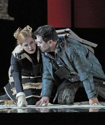 Handel’s score contains the memorable arias such as the haunting “Lascia ch’io pianga” (sung with deep emotions by Julia Kleiter’s Almirena;  Rinadlo’s triumphant four trumpet and timpani “Or la tromba” (my favorite piece from the opera); and, “Vinti Turbini’ from Rinaldo.  The colorfulness and glorious toe-tapping melodies that sing so smoothly give Rinaldo a richness seldom found in later operas. The harpsichord infused score features a comic scene that has Armida battling on the over-sized harpsichord (originally played in the pit by Handel himself now played by Jory Vinikour also in the pit) in “Vo’ far Guerra. ” Elza Van Den Heever show her comic chops in that scene.