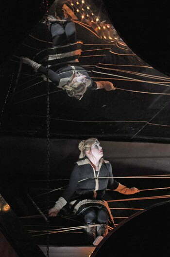 Rinaldo, ironically,  is about the First Crusade pitting the Christian against the  Muslims, yet director Francisco Negrin and set designer Louis Desire chose a vividly colorful post-Modern design in the new production debuting at the Lyric Opera of Chicago. This stunning set, complete with a large harpsichord dangling from above, gives  the fantasy element of Handel’s tuneful work an eerie feel. The battle for Jerusalem becomes a journey of quest as the warrior Rinaldo (the marvelous countertenor  David Daniels) seeks to find and free his lover, Almirena (Jukia Kleiter) from the grips of the evil queen from hell, Armida (marvelously sung and comically performed by soprano Elza Van Den Heever). This good verses evil fantasy features vocal dexterity and skill as the countertenors prevail in one of the most melodious opera’s ever.