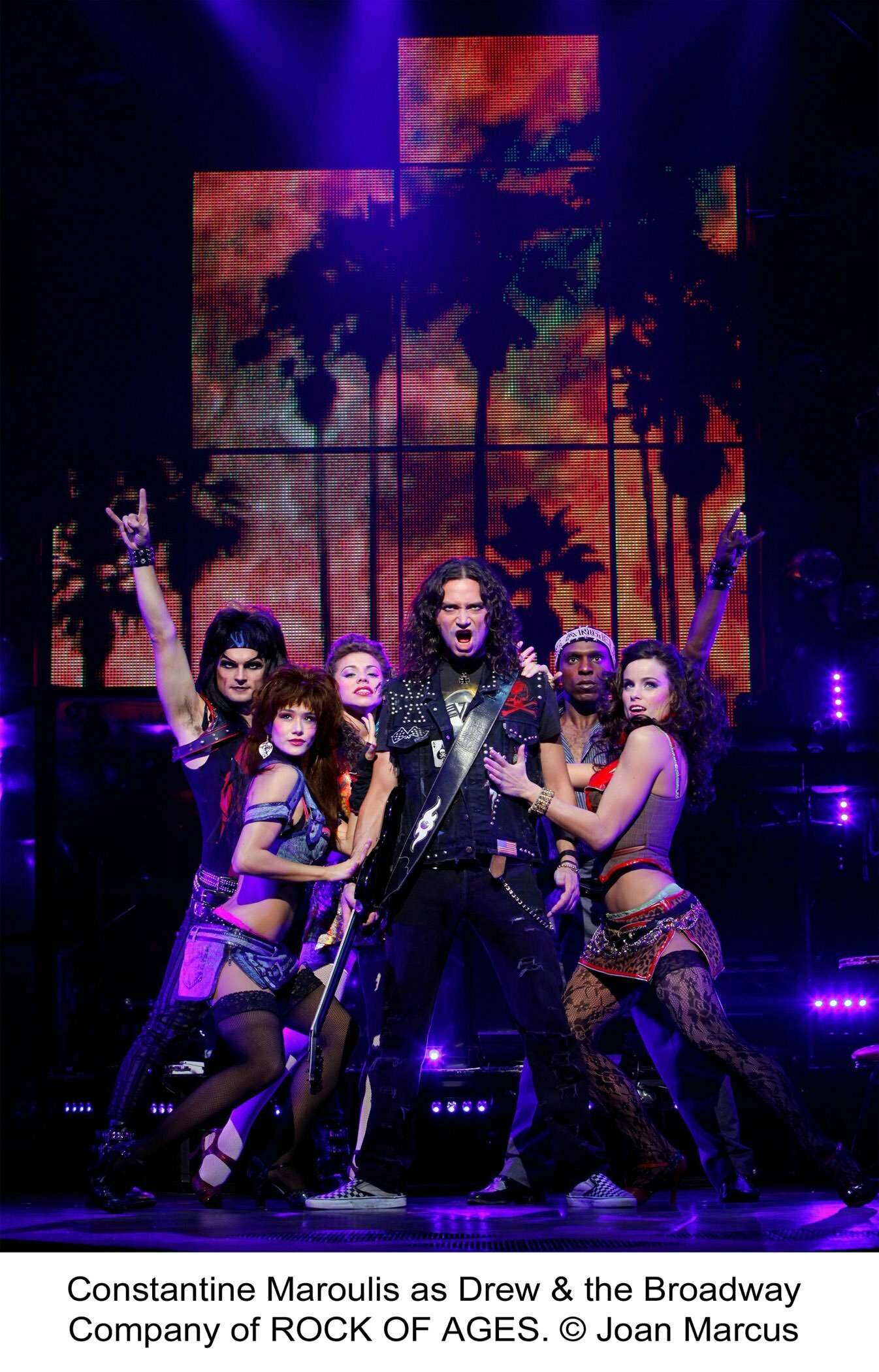 Rock of Ages is a musical that takes place on the Sunset Strip in 1987, the epicenter of the “hair band” movement. And as such, the score is…yep, you guessed it, 80’s hard rock. Whitesnake, Journey, REO Speedwagon, Night Ranger….they’re all represented. (Well, the ones they could get the rights to at least.) Now, having grown up in the 80’s, I have a special place in my heart for these bands. These songs, in all of their cheesiness, will forever be classics that take me back to the days of when I was younger. Still, sentiment aside, it’s nothing close to the Broadway show tune standards that I’m used to seeing in a theatre setting. Now, let’s add the fact that an American Idol cast off/soap opera star in Constantine Maroulis is your lead. Since I’m not a 14 year old girl or a middle aged woman, I can’t say that Constantine, and the play list he’ll most certainly be gyrating to, has much to offer me in terms of justifying the price of admission. Poison pen in hand I was ready to lambaste this production. But I couldn’t. I can’t. It’s just too good.