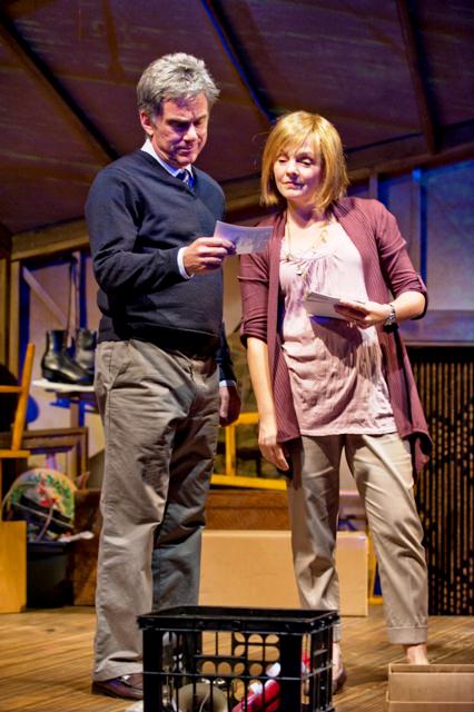 The plot of this Chicago première of Snapshots is easy to sum up: Sue and Dan (Susan McMonagle and Gene Weygandt), middle-aged empty nesters, find a hoard of old pictures in their attic.  Sue plans to leave Dan, and is just about to tell him so when they begin to examine the photos and reminisce about their early years together (Act I) before honing in on an examination the ways they have drifted apart (Act II).