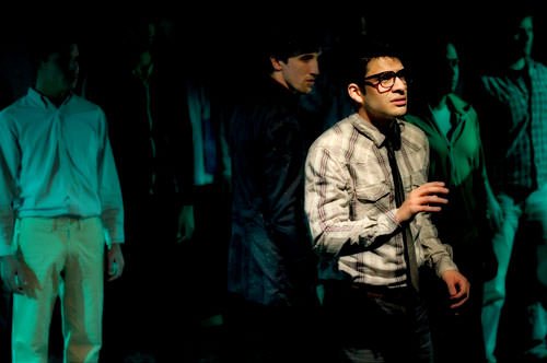 What do you do with a book of poetry if your determined to make a stage play out of it? Well, Madrid St. Angelo and Juan Castaneda together with Esteban Andres Cruz (movement director) and Liviu Pasare (video design) have created an eerie atmosphere that finds 18 lost souls being coordinated by a gatekeeper (angel?). The group is in a waiting room (purgatory?) for the afterlife’s next step. They desperately want their dreamscape to include their story; they speak their thoughts through poignant, hilarious, angst-ridden and emotionally-wrenching monologues.