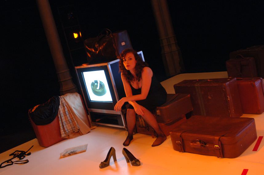 Noemi Schlosser takes on Piaf’s role in this production. It opens with her simply waiting, watching time crawl by, measured by cigarette butts in the ash tray. She calls a place her husband frequents, looking for him; he’s just left. No, they don’t know where he was going. His sister calls, asking if he’s there in the hotel with her; she lies, says he’s in the bathroom and can’t talk, sorry. Finally he comes home and starts reading his newspaper. It’s after 2am. She asks where he’s been, why he’s so late. He says nothing. We’re never sure if he’s even listening. She pours out everything; she hates him, she’s going to kill him, but then she’d have to kill herself, because she couldn’t live without him. This is a tortured woman. Her husband is having an affair with an ugly old woman, and she can do nothing. She is jealous of the people he dreams about. She is jealous of the people in his dreams; she wakes him up because he looks too content. The self-destruction is almost incomprehensible and yet all-too-human, all-too-possible.