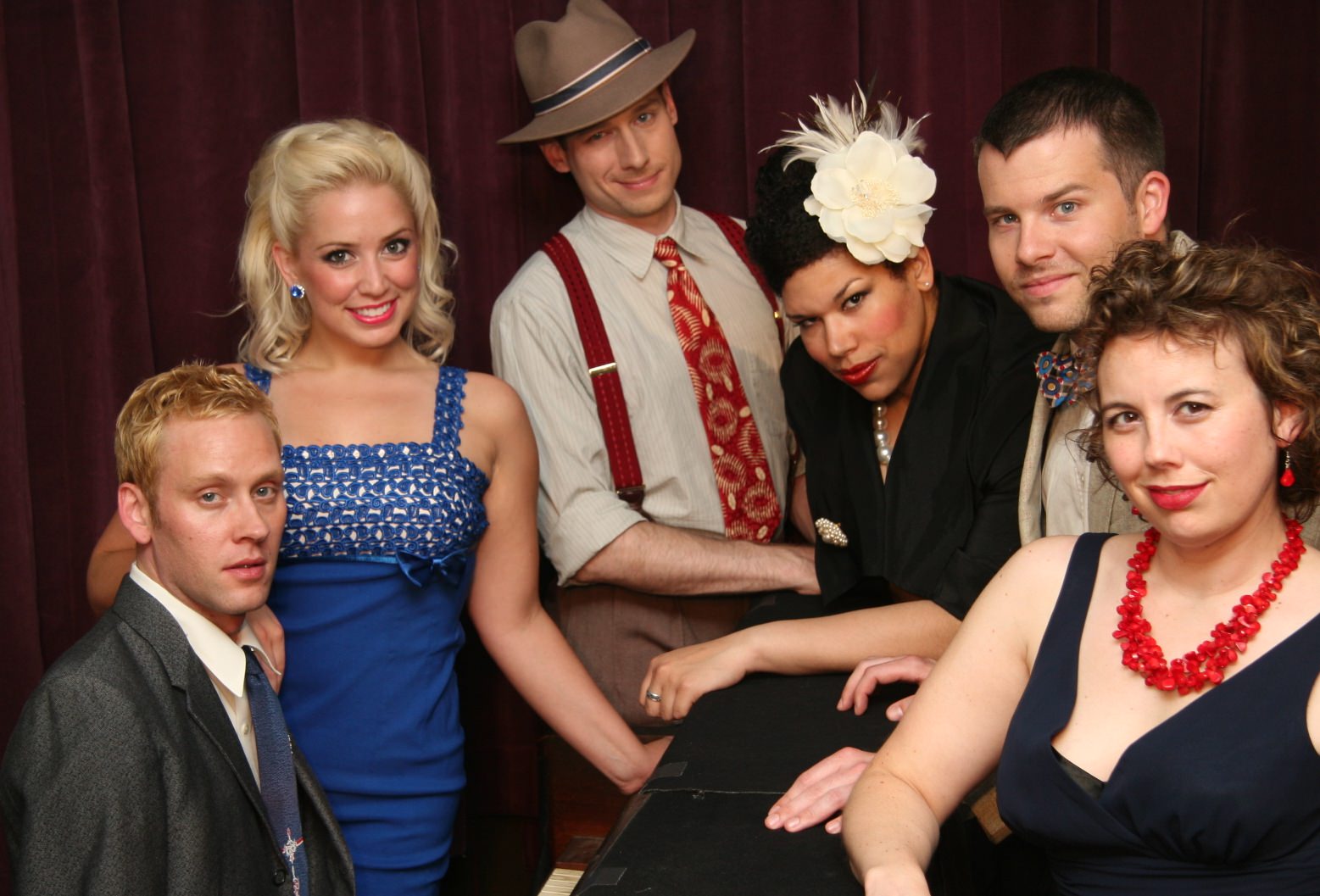 Utilizing the intimate space in the No Exit Cafe into an “L” shaped stage, director Fred Anzevino and choreographer David Heimann deftly created dance and movements that enhanced the six person cast’s superb understanding of their songs. This cast not only projects and enunciates their lyrics smartly without being amplified, they “sell” the meanings and themes of each song effectively. The lyrics were crystal clear. You’ll not find a finer cast of cabaret singers anywhere – Sarah Hayes, Stephanie Herman, Bethany Thomas, Eric Lindahl, Eric Martin and Kristofer Simmons sing their hearts out as they are in full command of Arlen’s tunes. It is so refreshing to see the 20-30somethings enjoying hearing and singing the terrific tunes from the late 30’s through the 50’s. We all know many of the sings, but many don’t know about Harold Arlen’s genius.