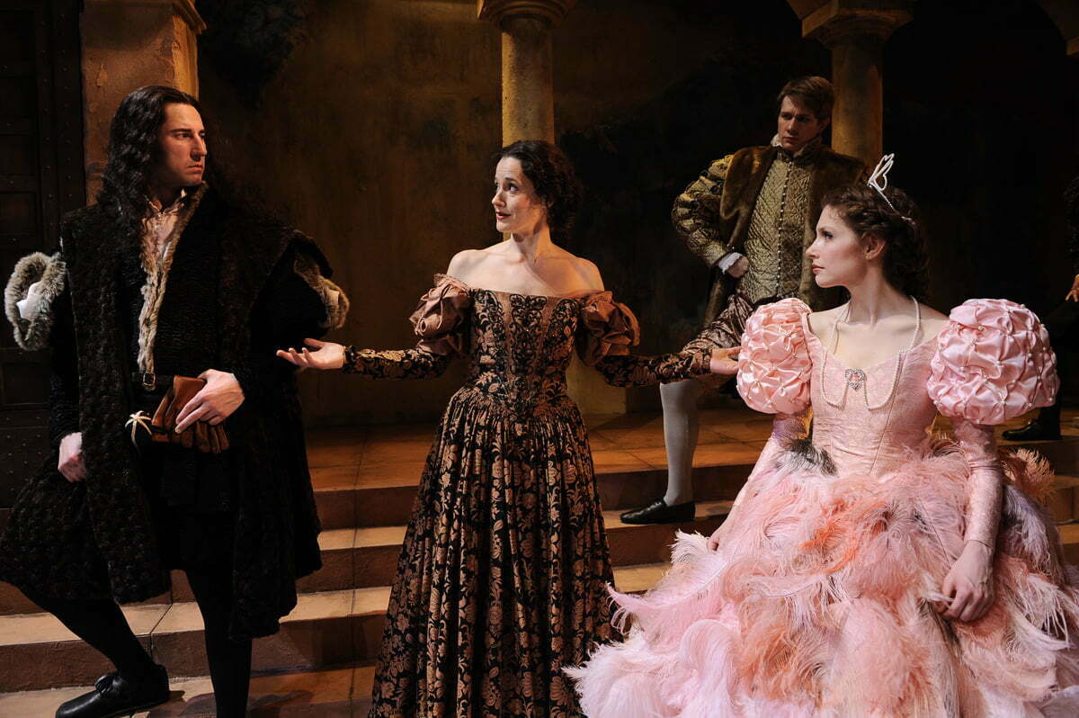 Then, there is the vulgarity to consider. Yes, this is a broad, bawdy play, now made even more so. The large codpieces are funny. Petruchio’s rather fleshy bare buttocks are less so. There are many humorous moments, but if ever an interpretation pandered to the lowest common denominator of humor, it is this one.
