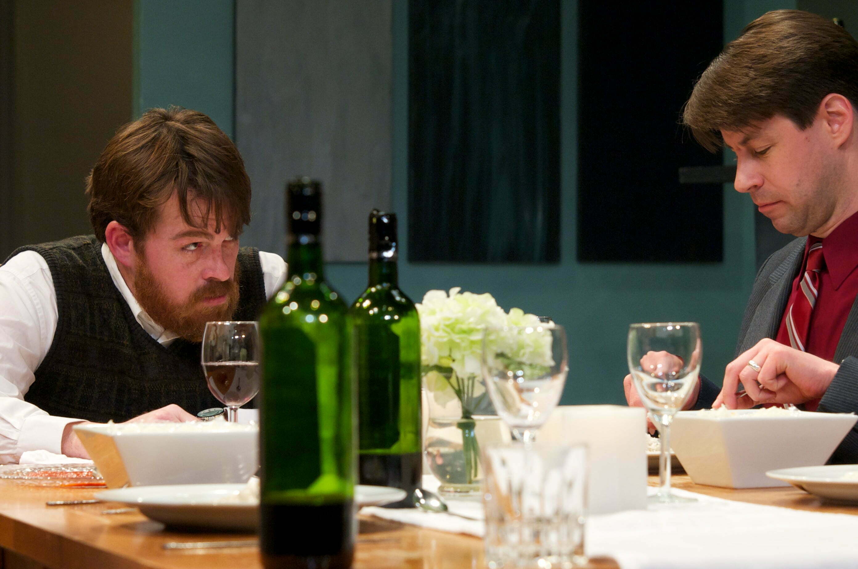 When, five years later, the tables have turned that necessitate the Brits hosting the Irish for dinner in their London flat in the hopes of landing a loan from the now rich Irishman, the “tables” surly have turned giving the play a workable twist. That Was Then is set in two time periods simultaneously (pre – and post-Celtic Tiger Era Ireland). Playwright Gerard Stembridge and director Carolyn Klein deftly weave the events of both evenings into a funny and cleverly presented dark comedy.