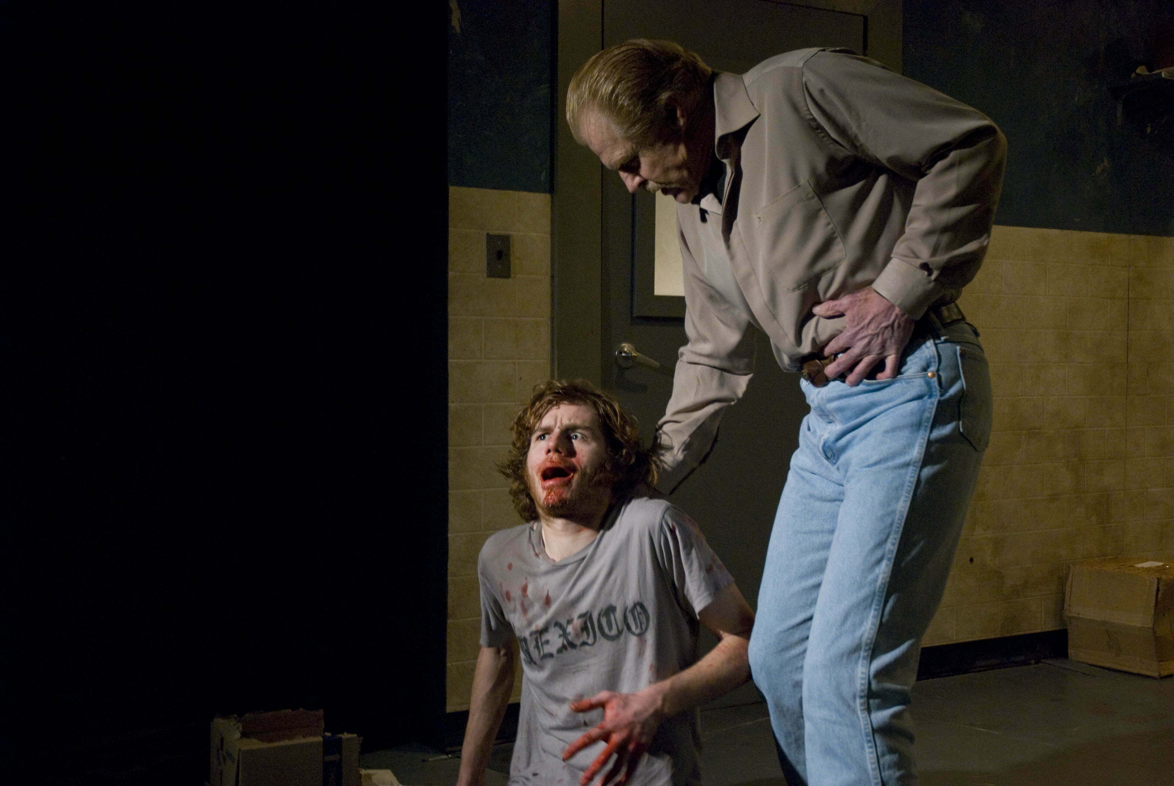 One of the brothers enlists the help of aging film star Lawrence Stephens, The Earl (Danny Goldring). The Earl is a Clint Eastwood type who seems much to0 long in the tooth to battle so effectively with Kent (Ryan Boutque) and Peter (Walter Briggs) yet he easily inflicts much verbal and physical pain as he plays the game with zest. Rick (Christopher Chmelik) is the ‘winning’ brother with The Earl’s help.