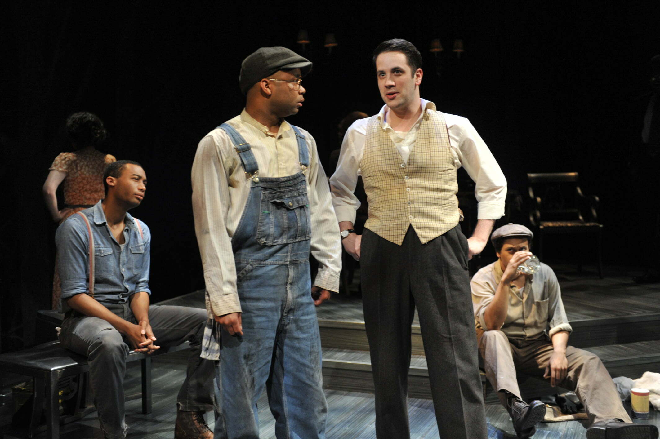 When James and Marie meet, sparks fly as each has separate and conflicting memories of that day in 1930. Playwright Charles Smith weaves a mystery as he dramatizes both James’ and Marie’s recollection of the events. We meet Tommy Shipp (Wardell Julius Clark) and his partner Abe Smith (Tyler Jacob Rollinson) and their naive younger teen buddy Apples (Anthony Peeples). These teens want to rebel from their poverty-stricken existence in Marion, IN. They hang with two like-minded white teens, Mary (Kelsey Brennan) and Claude (Zach Kenney). All are restless and rebellious.