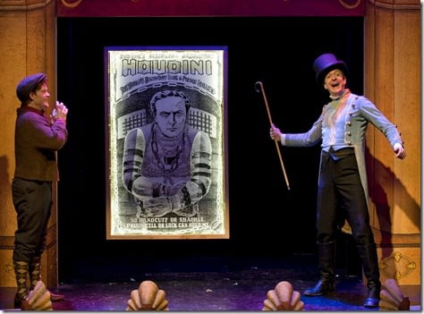 Based on the book by Brian Selznick, The Houdini Box is a children’s musical with music by Mark Messing and book and lyrics by Hannah Kohl. It is the story about a young boy, Victor (Alex Weisman) who is totally enamored with Harry Houdini and his magic tricks. NOTE: this is not the same show as Death and Harry Houdini that The House Theatre of Chicago is now presenting at Chopin Theatre but rather as kid friendly musical.