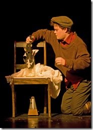 Through the musical, we see cute puppets moving the action along. Blair Thomas, the show’s director, is a master at utilizing puppetry along with live actors to tell a story. We see Victor and his Houdini puppet trying the Water Torture escape using only a water glass and a 6 inch puppet.