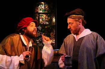 This 2 and a half hour comedy is set in the Middle Ages and plays almost like a musical due to the exquisitely complex poetic verse-dialogue that “sings” from the lips of each player. The humor, the irony, the wit, and the angst each character exudes captures us and holds us throughout. Teresa Hamm’s period-perfect costumes enhance the look and atmosphere. The cast understands and respects the cleverness of Fry’s work. You’d be hard pressed to witness a finer ensemble easily navigating the difficult text.