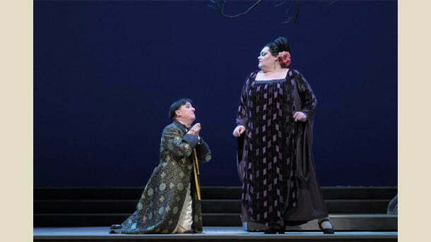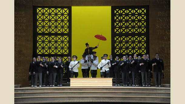Neal Davis is the richly devious and totally funny Ko-Ko while Andrew Shore delights as the pompous multi-minister Pooh-Bah. Toby Spence is the pure naive lover Nanki-Poo. Stephanie Blythe’s Katsha moves from rigid soul to a sweet thing as Ko-Ko woos her heart. James Morris presents the powerful Mikado as a wise soul.