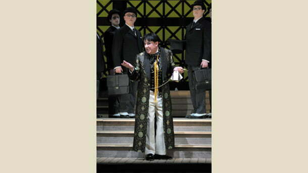 The Mikado finds Nanki-Poo (the charming Toby Spence) demonstrating his songs in “A Wondering minstrel I.” He loves and seek Yum-Yum (Andriana Chuchman) who is promised to Ko-Ko (Neal Davies), a poor tailor now promoted to Lord High Extortioner. Pooh-Bah (Andrew Shore in an exquisite performance) introduces himself with his many titles to Ko-Ko who must find someone to execute soon to comply with the Mikado’s law.