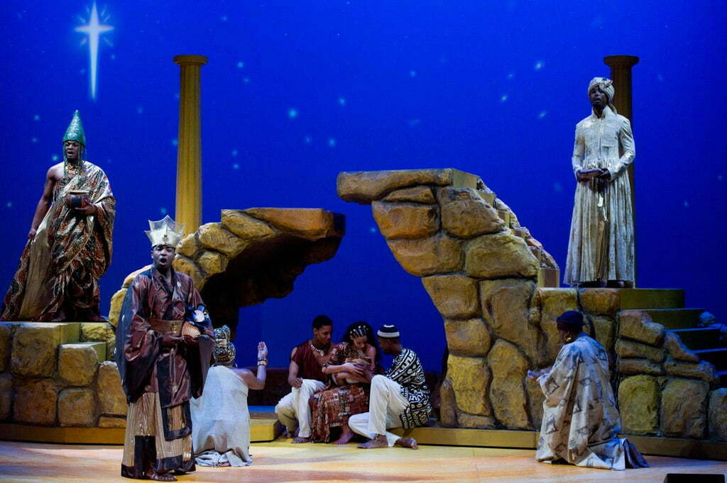 Based on Langston Hughes’ African American classic Black Nativity, McKinley Johnson’s takes on the birth of the Christ child is most African-Middle East oriented with five new gospel/blues songs by Jaret Landon. This well song show also features Kevin lega Jeff’s sensual traditional choreography and movement. The show is rooted in its unique perspective and solemn, emotionally rich songs.