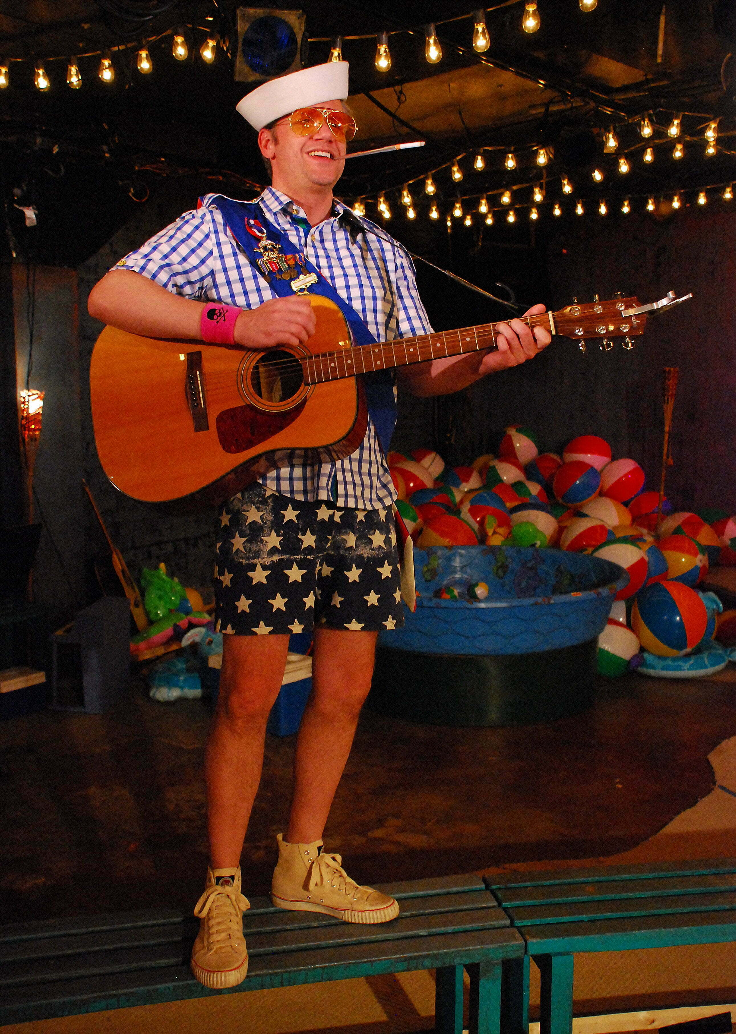 Director Sean Graney’s wild take on Gilbert and Sullivan’s The Pirates of Penzance comes off as more of a college frat and sorority prank than an operetta. Upon entering the promenade-styled runway setting, we see a group of Beach Boy look-a-likes dressed in short shorts playing guitars, hardly a Gilbert & Sullivan setting.