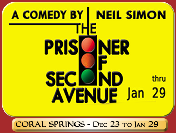Stage Door Theatre in Coral Springs, 8036 W. Sample Rd, 954-344-7765, Tickets $38- $42.  Wednesdays, Thursdays, Saturdays and Sundays at 2 pm, Thursdays, Fridays and Saturdays at 8 pm, Sundays at 7 pm through Jan 29. Running time two hours including a 15-minute intermission.