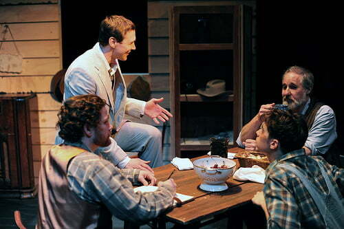 With only 54 seats, I’d advise getting your tickets quickly since you’ll want to see this outstandingl show. We meet the Curry family: father H.C (Robert Frankel), brothers Noah (Daniel Gilbert) and Jim (Nate Santana) and Lizzie (Anna Hammonds)- the sister, housekeeper, and cook. It is the Depression Era in drought-stricken American West (Oklahoma?). Cattle are dying and the temperature is 110 in the shade.