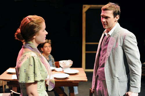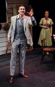 Director Stephen M. Genovese made the bold decision to forgo the normal 99 seat layout at Theatre Wit for a more intimate, close-up setting for the wonderful N. Richard Nash’s The Rainmaker. Genovese, also the set designer, added depth and heart to the show by allowing the audience to literally look into the eyes of the characters.