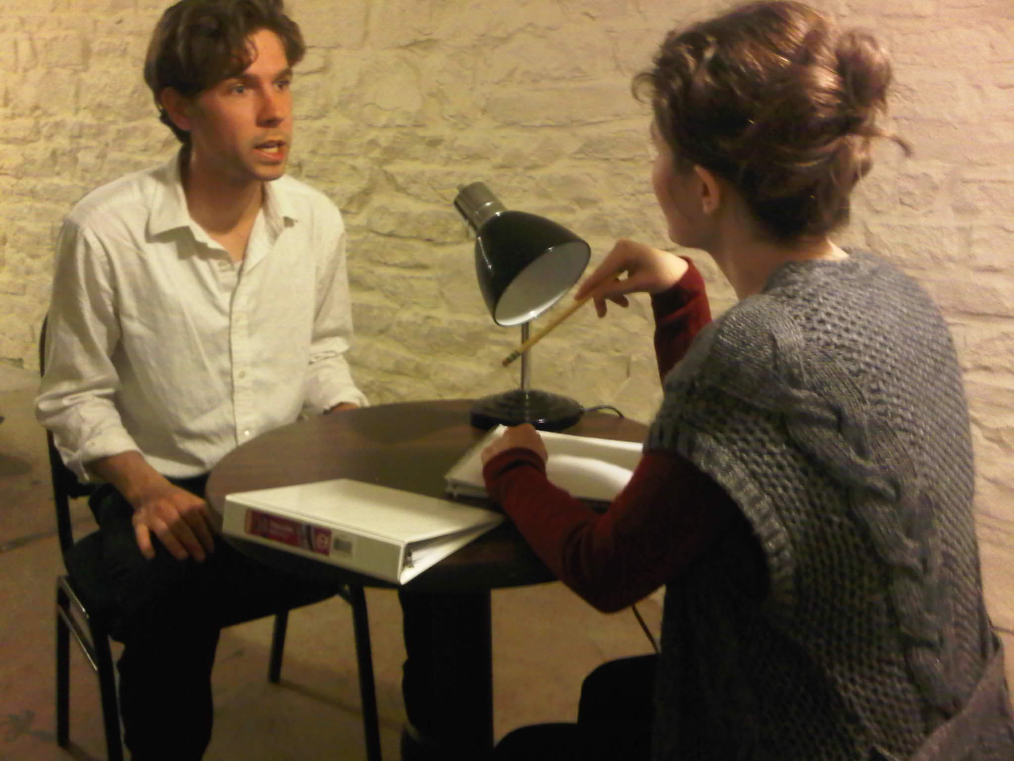 Gorilla Tango’s intimate setting and cold brick walls give Brikenbrak Theatre Project a perfect setting to compliment the script.  Most shows at Gorilla Tango tend to forfeit a set for their show because it must be taken down and removed at the end of each performance.  Director Paul Cosca uses a simplistic, but tangible set to create the different locations of the psychiatric ward.  The single table set underneath a bare bulb creates the appropriate emotional atmosphere for the night nurse and Mr. Suit to meet and discuss plans.