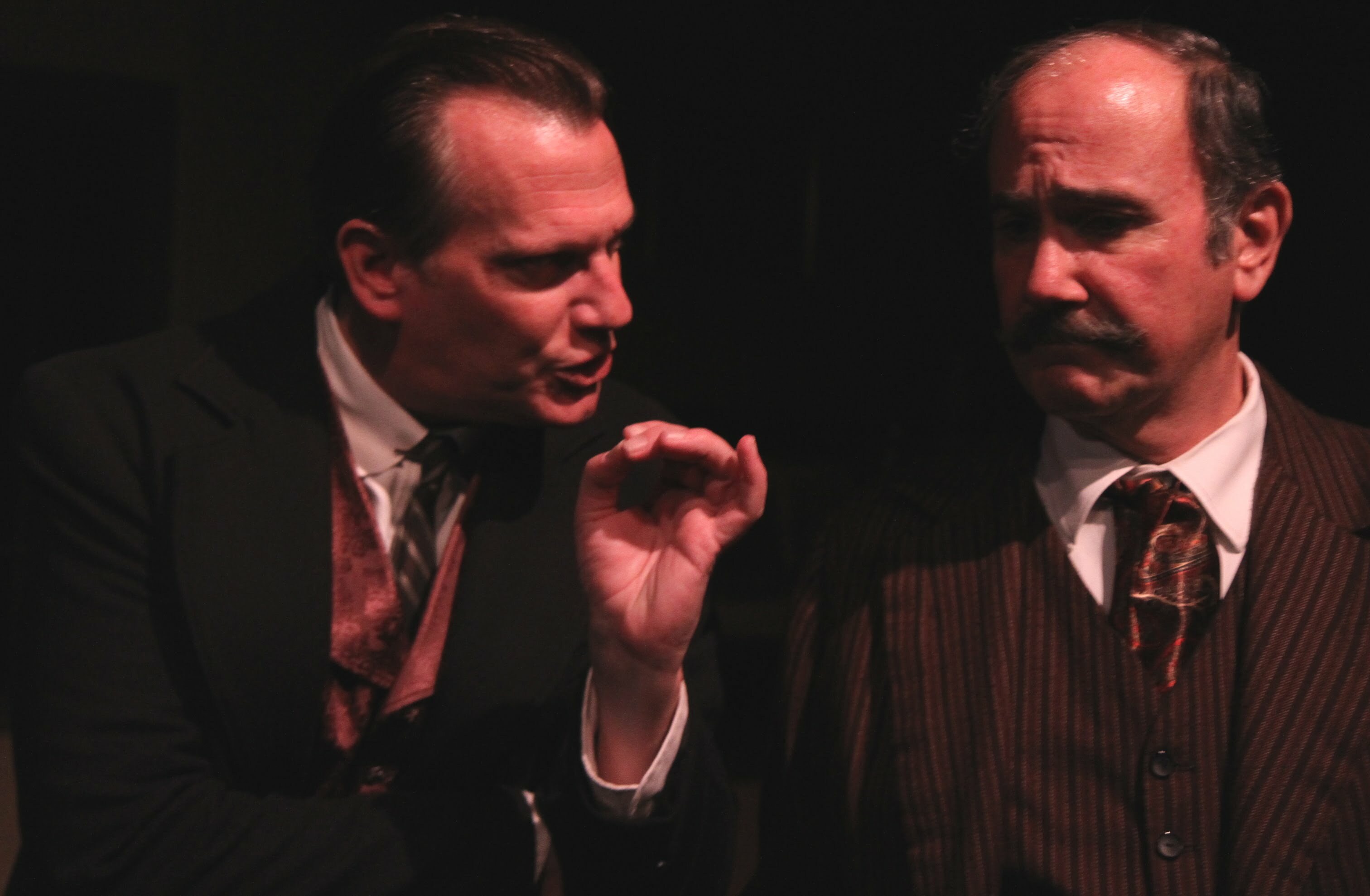 I love a complex who-done-it and when you combine Sir Arthur Conan Doyle, Terry McCabe and Don Bender, you have the ingredients of a wonderful evening of mystery theatre. The Sign of the Four, Doyle’s 1890 second Holmes novel centers on the investigation of a murder by poison dart, a search for a stolen Indian treasure as well as being a introductory character sketch of both Holmes (Don Bender) and Dr. Watson (Jerry Bloom). The central conceit of the Holmes sage – that Holmes and Watson live together and share the adventures toward solving London crimes is presented.