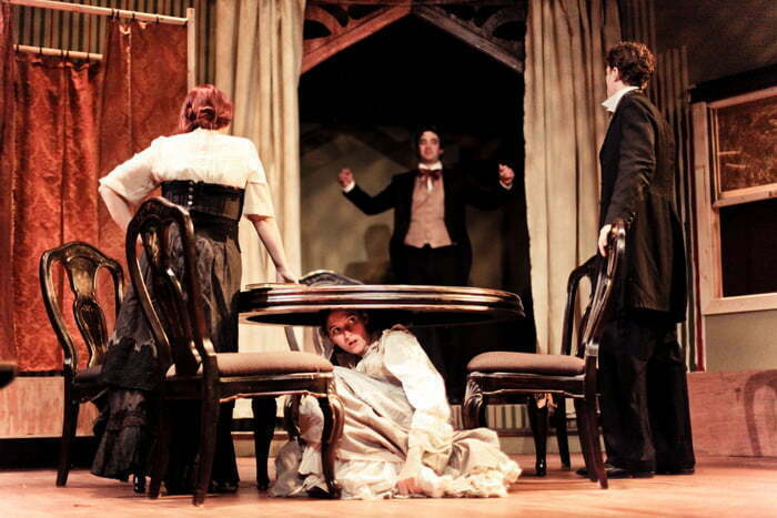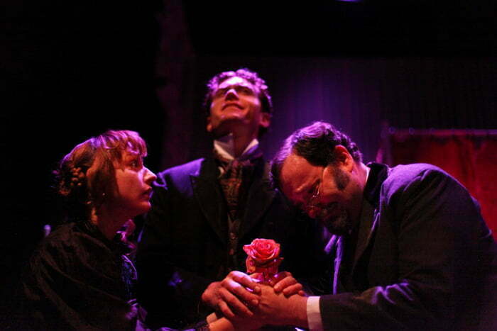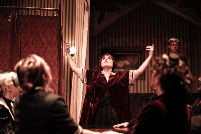 She is back – that talented zany playwright Emily Schwartz this time with a new sophisticated work that is part 19th Century melodrama and part cult mystery. This is a most engaging new work that both debunks and bring to life ghosts. The Strange Tree Group is know for their wickedly whimsical and delightful plays and The Spirit Play sure fills that bill.