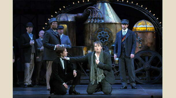 Hoffmann (tenor Matthew Polenzani) is a lovelorn, hopeless poet inspired by the Muse of Poetry (Emily Fons), losing his loves to Evil, always played by the same man (bass/baritone James Morris). Really, Hoffmann says, though he relates three tales of love through the opera, it is the story of one girl, the prima donna Stella (Emily Birsan); but it is three different aspects of his love for her: the naïve, early love; the love of her as an artist; and the lust for her beauty. Each time Hoffmann is thwarted by the same evil force, again presented as different aspects of the same power. The piece opens at a tavern next to the opera house where Stella is performing. Hoffmann and his best friend Nicklausse (who is also the Muse of Poetry) enter and entertain the patrons with a song; but Hoffmann wanders into fancy, talking of his love. Councillor Lindorf (the incarnation of evil in the story frame) convinces Hoffmann to regale the crowd with the stories of his three loves.