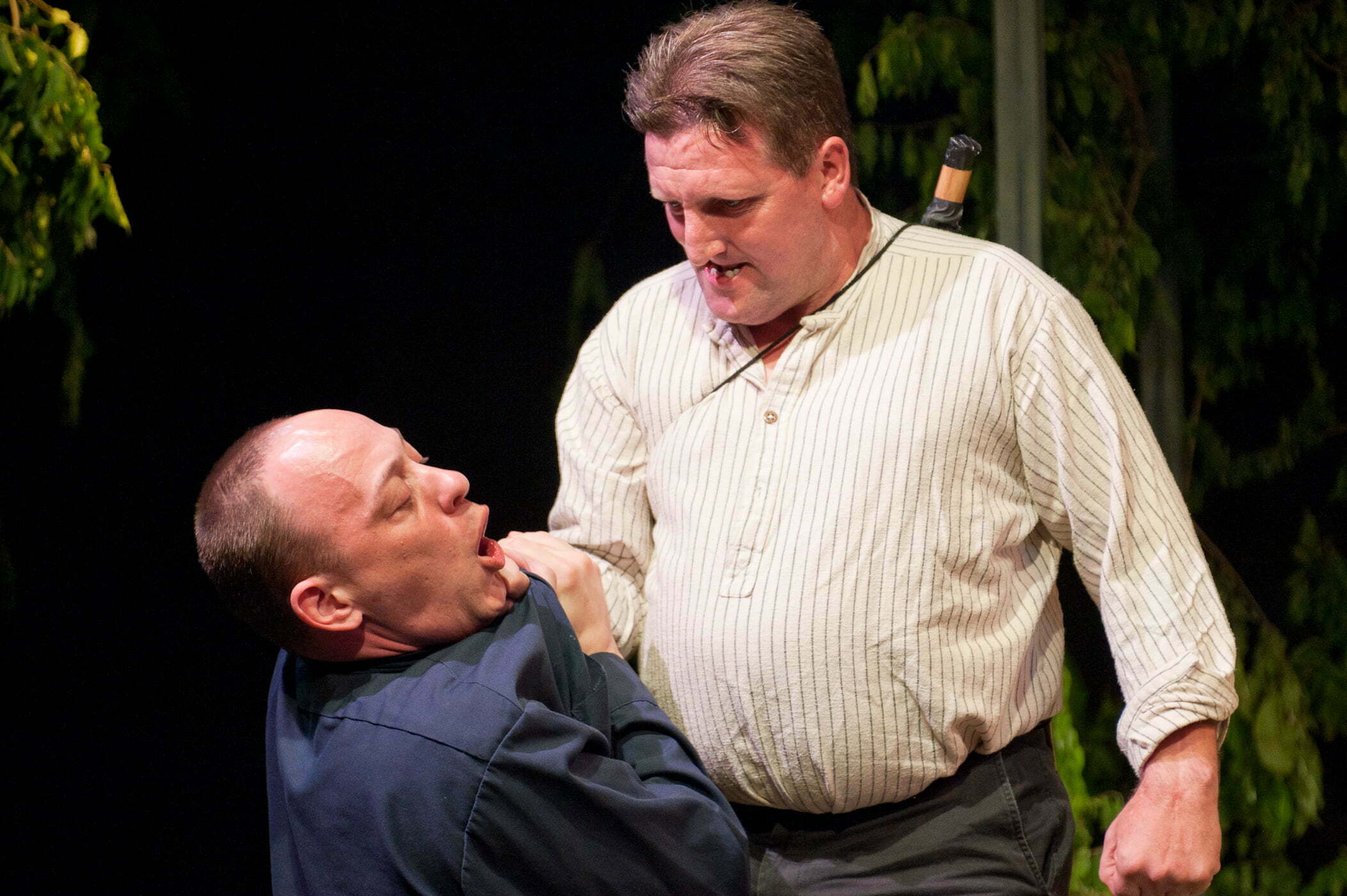 Finbar’s cousin and pal, Frankie Walsh (nice work by Nick Horst) is still bitter from his father’s death and the eviction from the Walsh’s land. Owning land by the Irish is a mark of status and eviction is a mark of shame. When Frankie gets proof that Father McLaughlin (Malcolm Callan) is getting kickbacks for aiding the English landlords in reacquiring land, his rage leads to a series of violent confrontations. The play has unique surprises cleverly presented that resolves the play in a uplifting manner. Finbar wants his lover yet he needs to help his cousin, Frankie confront the corrupt priest so he devises a play with the help of the Tallest Man.