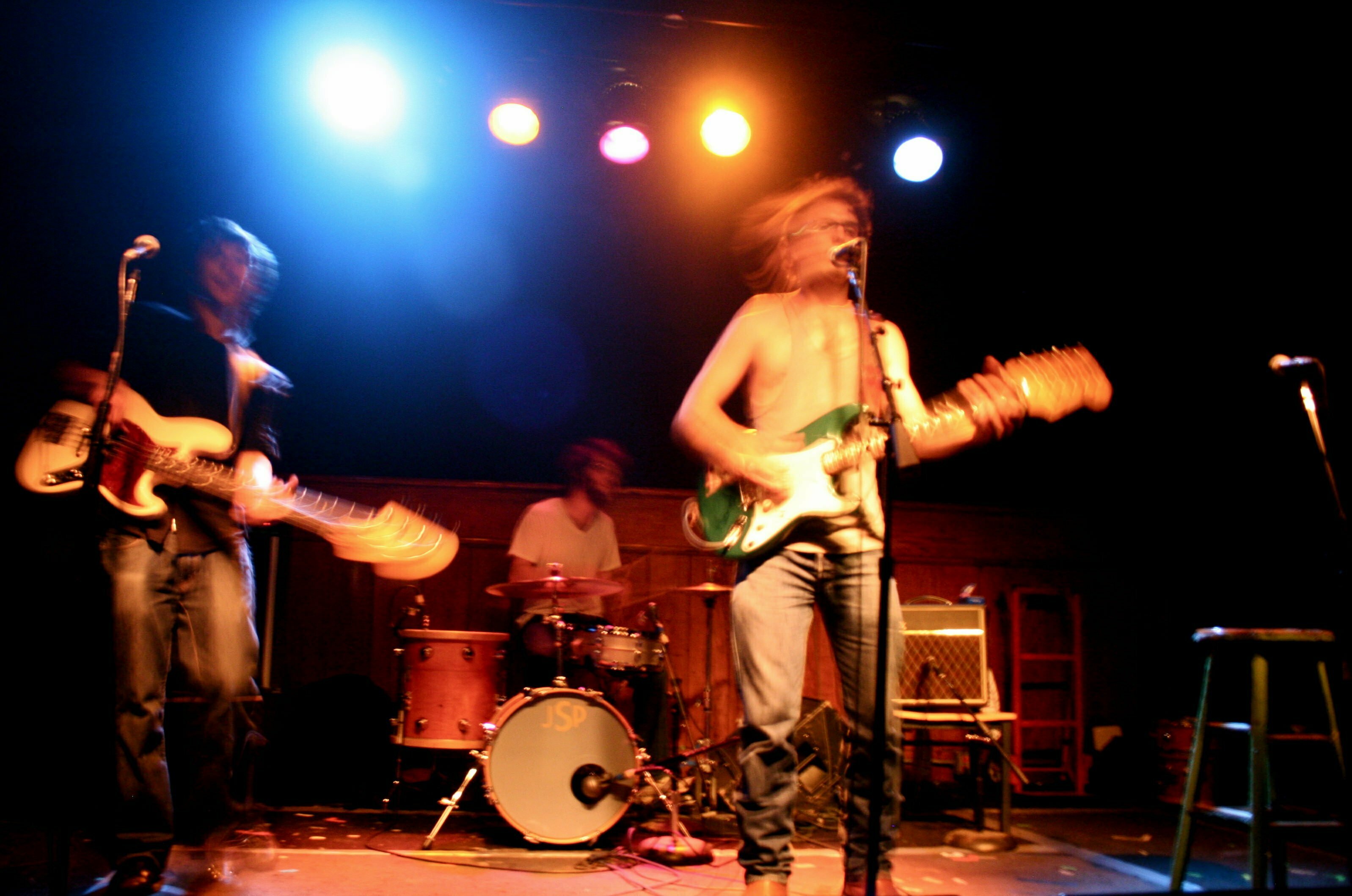And this trio is exceptionally tight, the whole evening. Jack’s in the pocket, Joe’s laying down amazing little fills and standing strong, and Theo’s playing the hell out of his guitar, and singing like a white soul man. I mean to say, the musicianship onstage was mind-blowingly, face-meltingly good. Three of the best musicians I’ve seen in a long time, and I’ve seen some good ones. It was a real pleasure to watch them play. I mean, some bands, they’re fun to see, but these guys were fun to watch: Jack laying down a beat, head lolling back with a big, open-mouthed grin like Snoopy; Joe standing, bobbing his head, laying down licks; Theo up there, just off-center stage, playing like a madman, singing and grinning from ear to ear. “I’m surrounded by hilarious people so I feel like I have to try to be funny,” he confides in the audience.