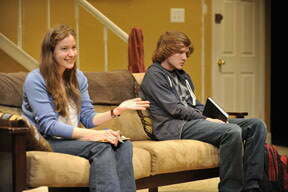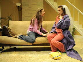 Originally produced at New York’s Roundabout Theatre, playwright Kim Rosenstock’s dark comedy, Tigers Be Still, is a fun-filled comedy featuring a group of likable losers who can’t seem to cope with life’s stresses. We meet Sherry (Mary Winn Heider), holding a master degree in art therapist who has been sitting home depressed over lack of work. Her distraught sister, Grace (Kasey Foster) drinks, sleeps, drinks more then watches “Top Gun” over and over to drown out her jilted marriage plans. Add an unseen mother whose weight gain leads her to hide in her upstairs bedroom and you have a crazy family dynamic in play. But Sherry get work as an art teacher through her mother’s contacts with an ex-high school boyfriend now a principal at a local middle school.