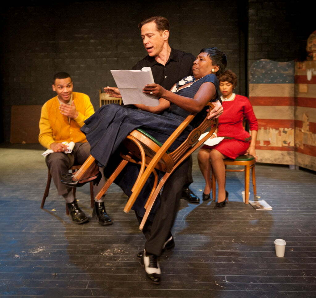 The flamboyant and determined white director, Al Manners (a strong performance by John Mossman) and his bumbling stage manager, Eddie Fenton arrive, the role playing emerges. Wilmetta and her group deftly use their get-along tactics to charm and boost the ego of the director. Al is a method director bent on getting his actors to internalize the ‘truth’ of their characters in every scene. He uses exercises to get the cast into realizing the truth of their actions in the play. Wiletta has much trouble with the ‘truth’ of her character as she argues that a black mother would never tell her son to go with the whites risking his lynching.