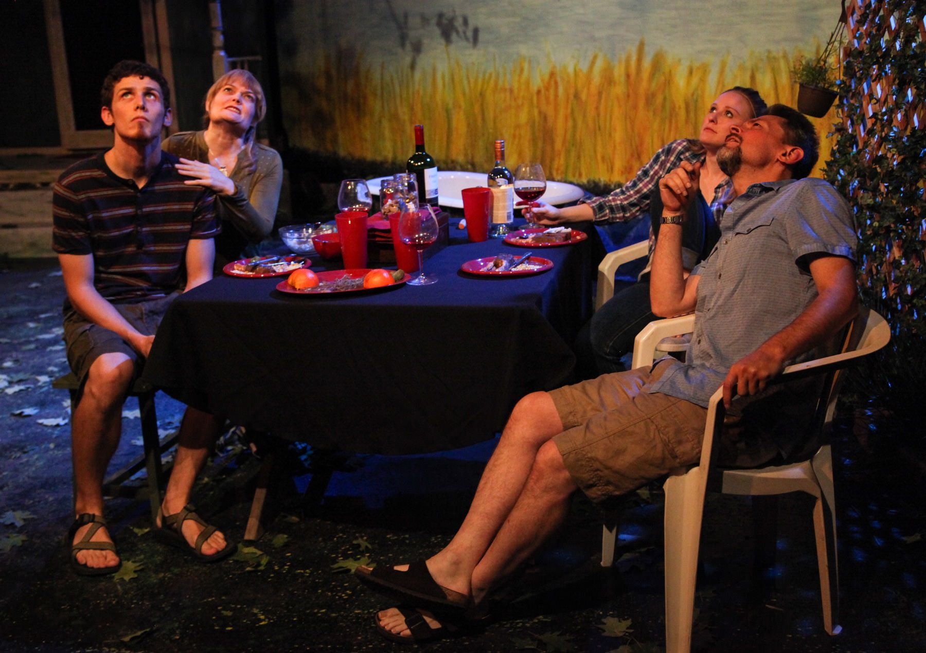 The family reunion finds his too nervous son Nate (Tim Larson) tentatively welcoming his father’s return but the daughter Erica (Sara Pavlak) is extremely angry when her father returns after the long absence. Helen (Amy Kasper) appears agitated and quite sarcastic upon confronting Richard. She has an edge on her remarks toward Richard and his young girlfriend.