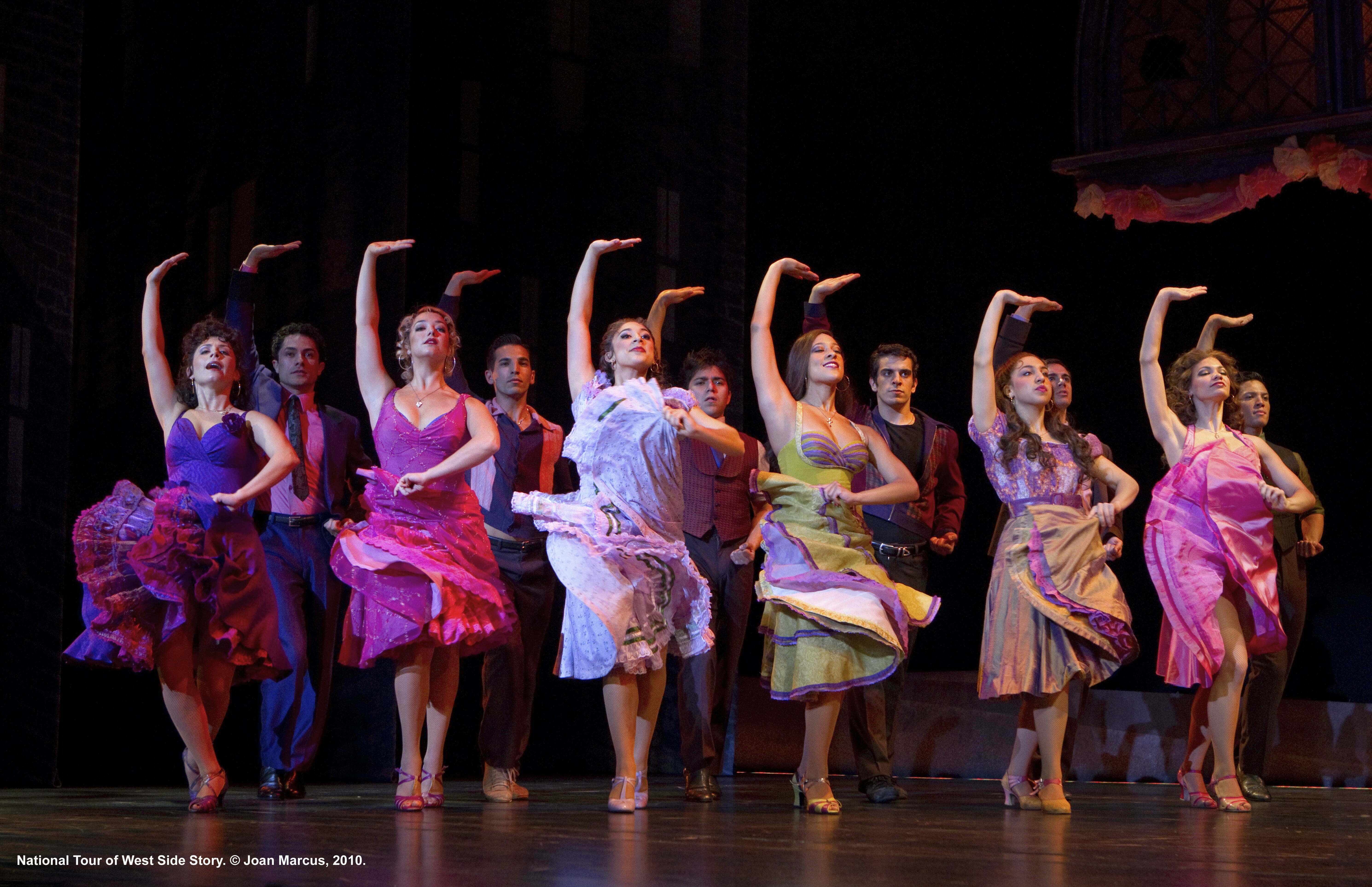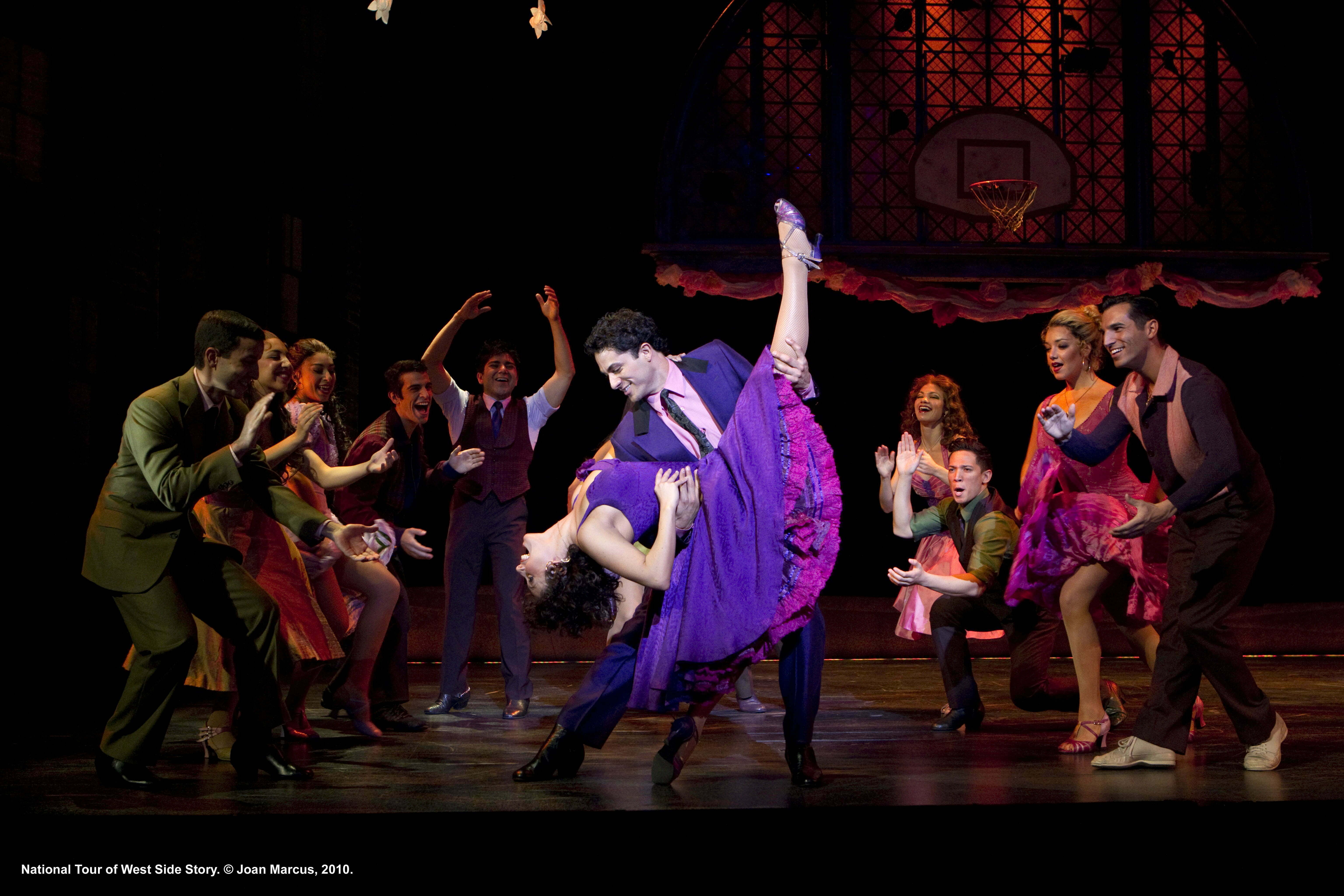 With all that being said, let me state that this National Tour is still a most worthy, even breathtaking theatrical event. Bernstein’s music and the Robbins’ inspired dances are so exquisite that this production is a terrific show to introduce teens to the magic of classical Broadway musicals. West Side Story certainly captures the angry voice of urban youths in the 1950’s. Much of that angst still resonates today. But in this high energy production – dance and a heart-throbbing score dominate. And that is all that is needed sometimes.